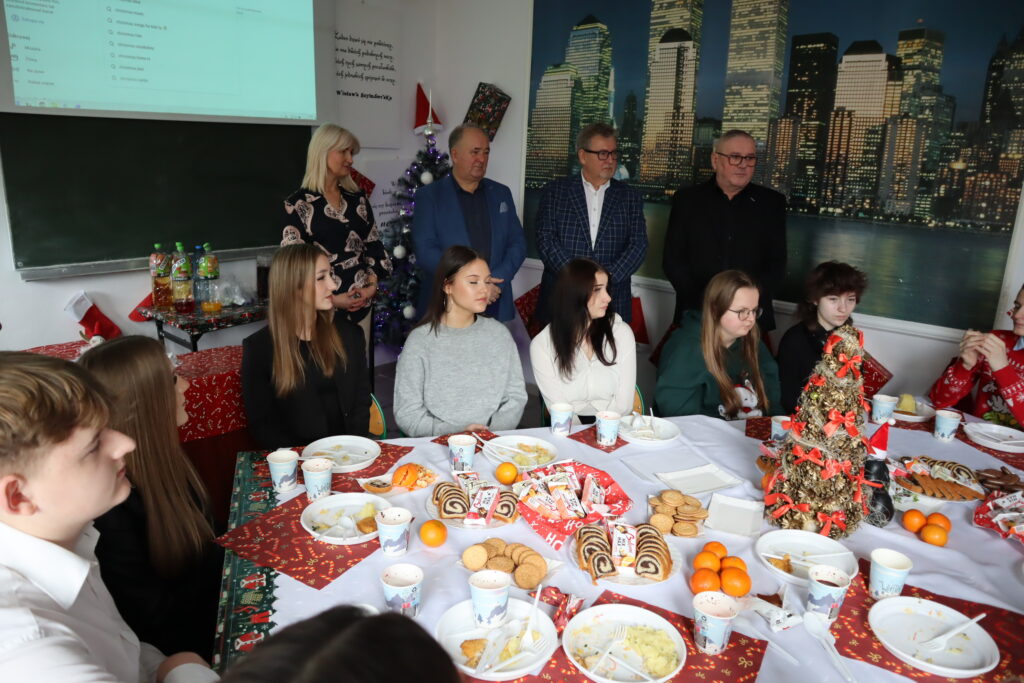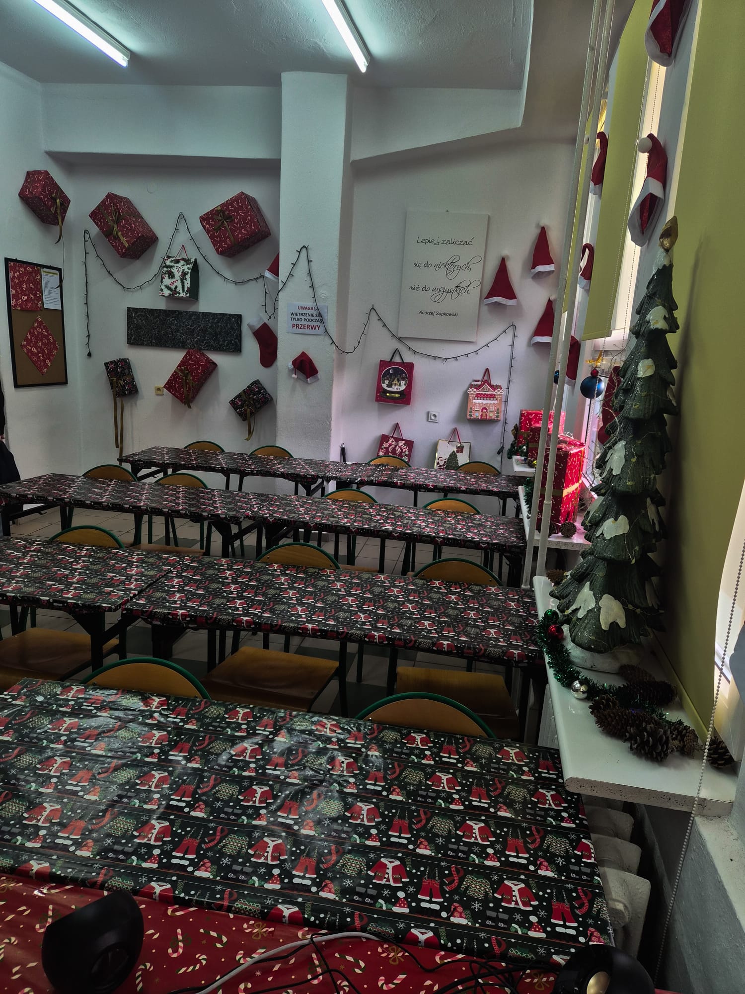 W dniu dzisiejszym odbyły się Wigilie klasowe. Uczniowie miło spędzili czas składając sobie życzenia świąteczno-noworoczne i śpiewając kolędy przy stołach zastawionych z przygotowanymi smakołykami i udekorowanymi świątecznie klasami. W dniu wczorajszym odbył się konkurs na najładniej udekorowaną klasę. Niezależna komisja stwierdziła, że najładniej klasę udekorowali uczniowie 1 A, drugie miejsce uczniowie IV A, natomiast trzecie miejsce przypadło uczniom klasy II A/SG. Gratulujemy uczniom i wychowawcom klas.