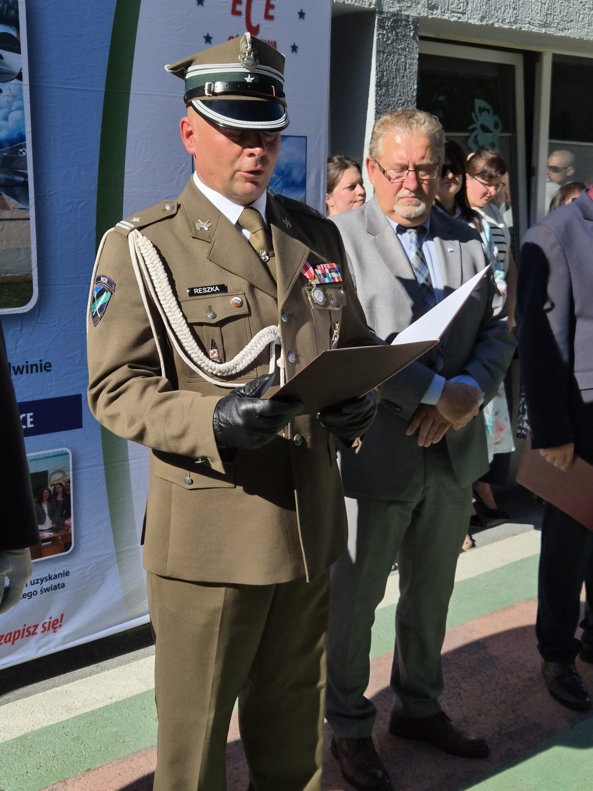 List od Ministra Obrony Narodowej skierowany do uczniów i nauczycieli odczytał Pan mjr Michał Reszka z WCR Koszalin. Szczególnie ciepło przywitaliśmy uczniów pierwszej klasy OPW i nowego nauczyciela przygotowania wojskowego Pana płk. dypl. rez. Dariusza Sienkiewicza. Więcej fotek patrz tutaj!