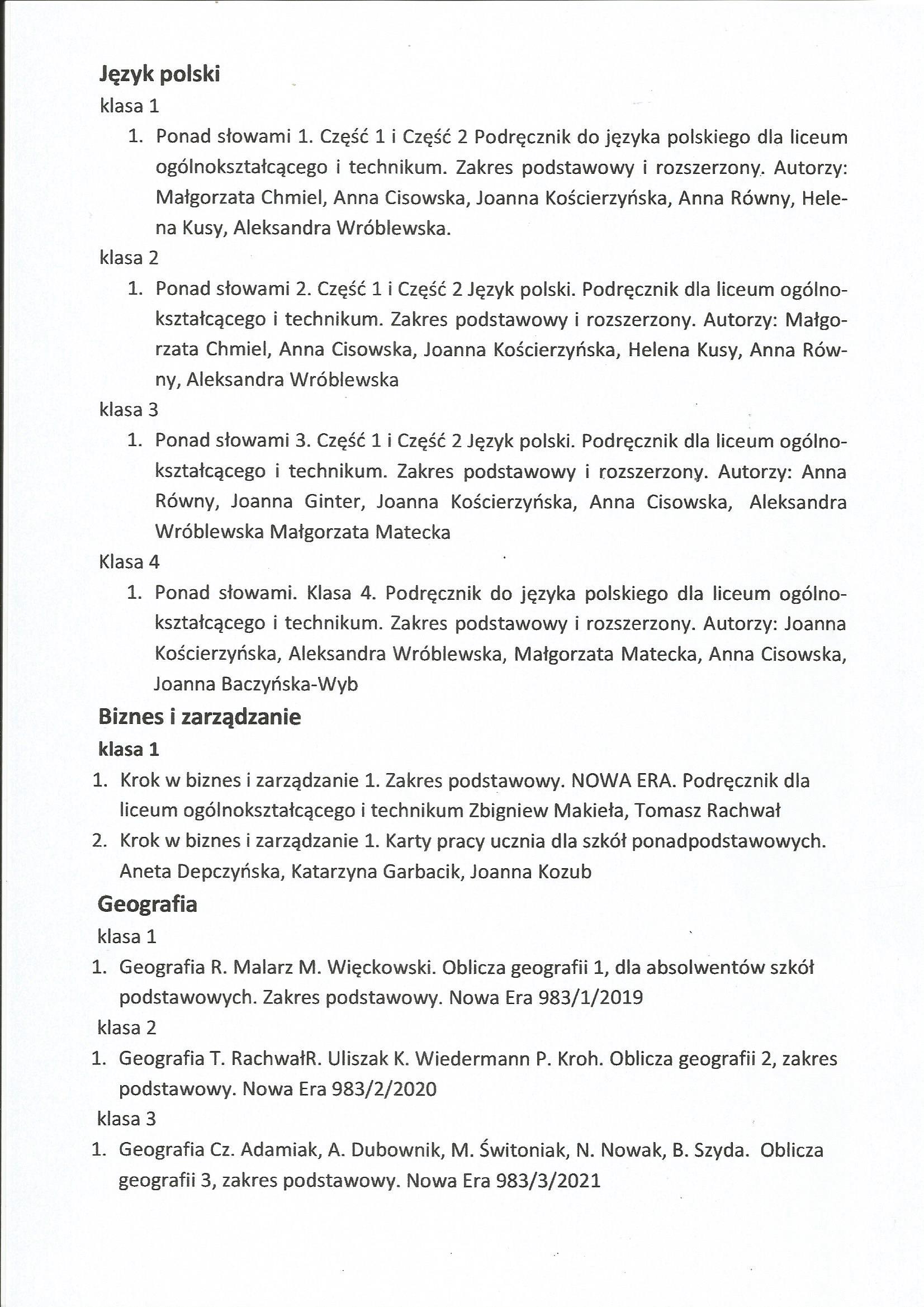Wykaz podręczników