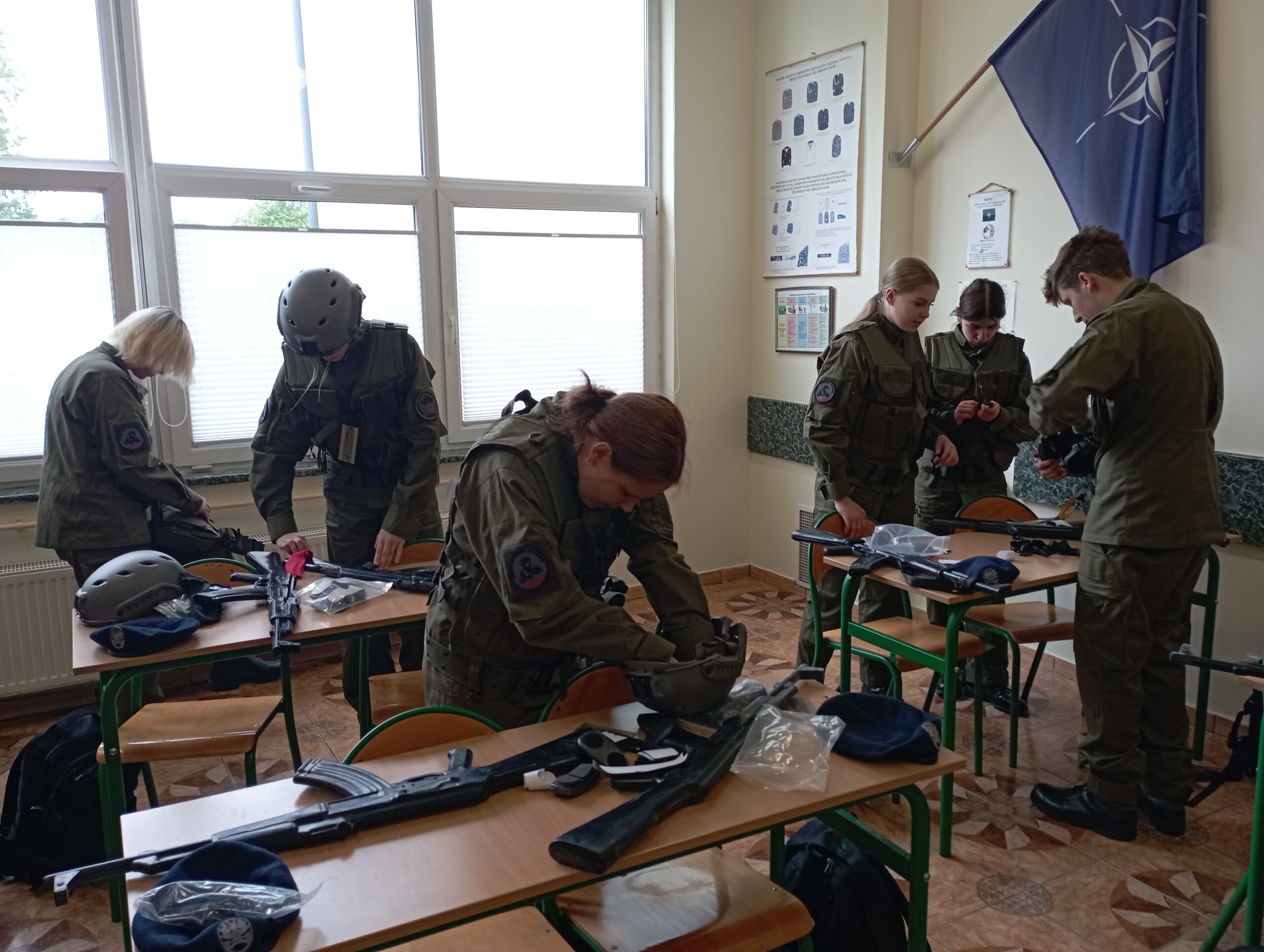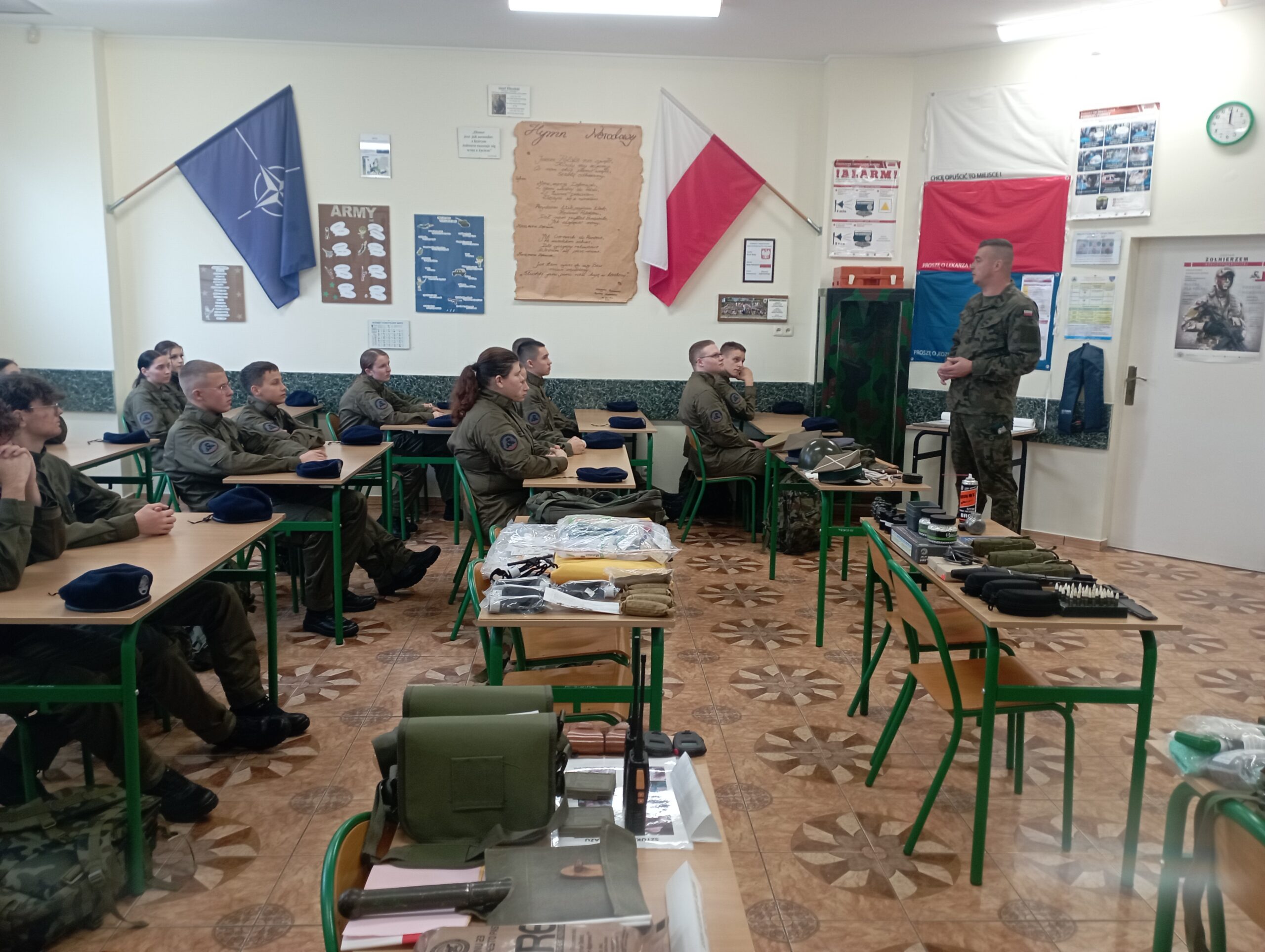 Podczas kolejnych zajęć uczniowie są zapoznawani z wykorzystaniem wyposażenia i uzbrojenia pojedynczego żołnierza.